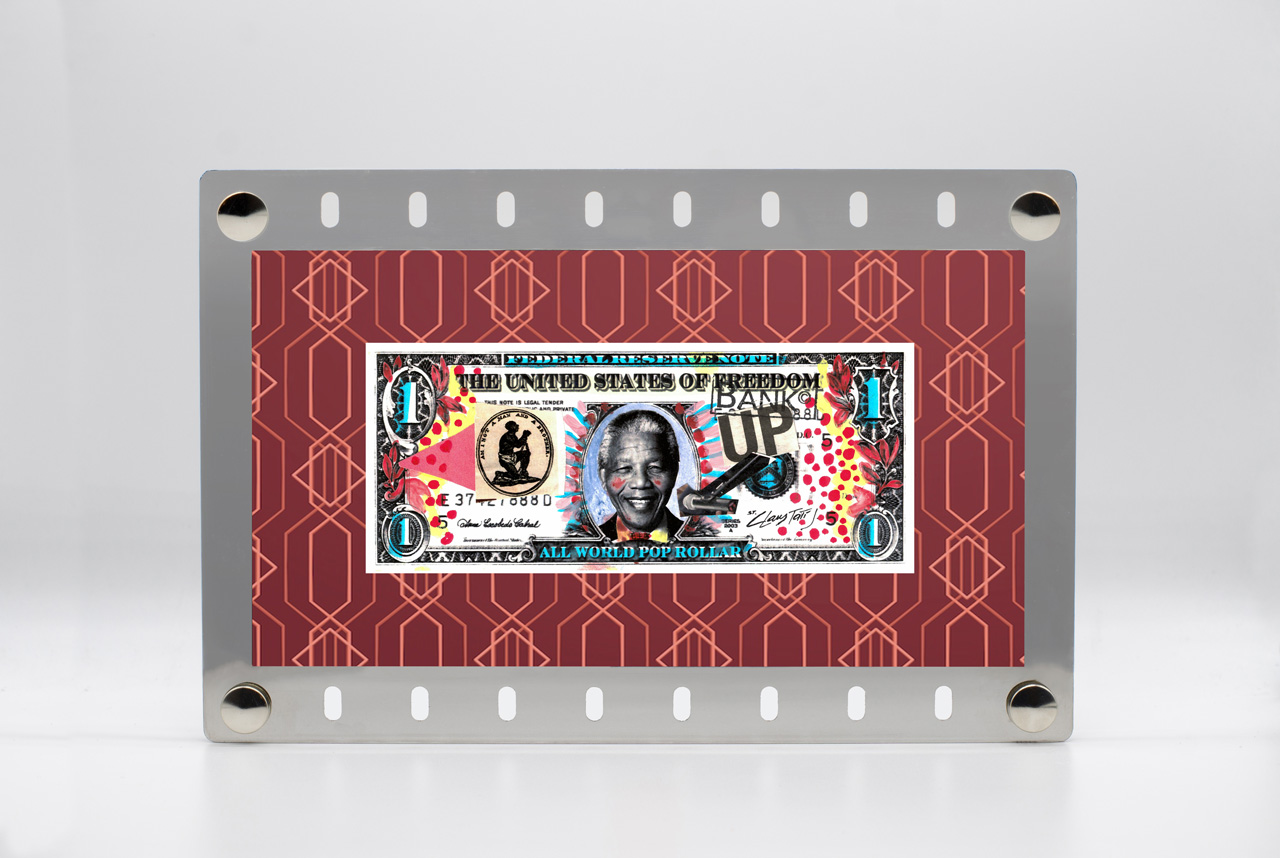Every single Nelson Mandela banknote issued by POP ROLLAR BANK is unique and inimitable as it is hand painted according to the creative flair of the artist and founder st. Claus Tatí J.